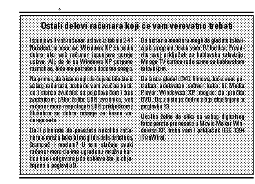 vo poglavlje vas upoznaje sa raznim delovima i delićima računara. Slobodno ga zanemarite. Šta vas briga kako se zove svaki delić vašeg PC-ja. Osim u slučaju da vaš računar pišti kao auto-alarm (ili ako ne pišti kad treba da pišti), nemojte se uopšte upuštati u razmatranje ovog dela. Jednostavno zavrnite "uvo" na vrhu ove stranice, u smislu: "Znači ovde je sve to objašnjeno", i nastavite dalje.