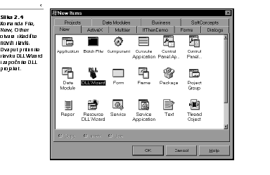 Dinamički povezana biblioteka predstavlja jedan od tipskih projekata u Delphijevom skladištu. Ako želite nov projekat biblioteke, u meniju redom pritisnite stavke File, New, Other i na kartici New okvira za dijalog New Items, prikazanog na slici 2.4, izaberite stavku DLL Wizard. Najupadljivija razlika izme?u biblioteke i izvršne datoteke jeste to što izvorna datoteka projekta - pritisnite tastere Alt+P, V da biste videli izvorni kôd projekta - sadrži direktivu library, umesto direktive program. Direktiva library nalaže prevodiocu da aplikaciju prevede u DLL datoteku. Sledeći kôd prikazuje kako možete da napravite sasvim jednostavnu biblioteku.