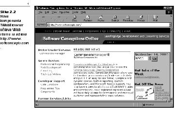 Kada sa svog računara pokrenem ovaj demonstracioni program, na?em se na adresi http://www.softconcepts.com, na matičnoj strani moje firme prikazanoj na slici 2.2. Dobijate čitač Weba samo pomoću jedne komponente i jednog programskog reda. Iako na tržištu možda i nema mesta za nove čitače, neka ovaj samo ilustruje šta sve mogu komponente.