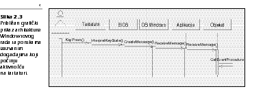 Windows radi na sličan način - samo malo drugačije. To više liči na vojnike koji su se okupili oko "poštara" željno očekujući da čuju i svoje ime. Zasada nema načina da Windows brine o sadržaju poruke pošto softver koji bi to radio uglavnom još nije napisan. Ako želite da pišete programe za Windows, dobro bi bilo da znate kako da odgovorite na poruke. Dobro je što Delphi već zna kako da se sna?e sa većinom poruka, a još bolje je to što ćemo u narednom odeljku pokazati kako da pišete metode za rad sa porukama i obradu doga?aja.