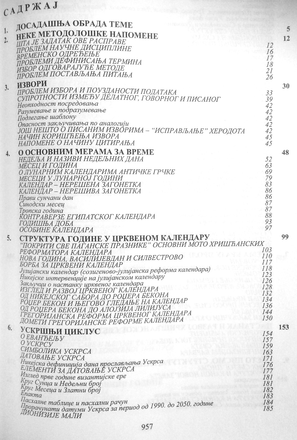 Главни правац наших разматрања ће због тога бити усмерен на ово питање. Како поново саставити те покидане везе и како их сложити у првобитну целину? Плод таквог напора на поновном успостављању тих веза требало би бити препознавања изгледа готово читавог првобитног система веровања, култа и митологије. Велику помоћ у том поступку ће нам* пружити анализа црквеног календара. Показаће се да је, пред налетима новог и другачијег, готово читав духовни живот наших предака у њему нашао склонипгге. Уколико се успешно реши овај основни задатак, следећи корак би био извршење компаративне анализе, односно, упоређивање добијених резултата са календарима, веровањима и обичајима других народа, првенствено европских, чије порекло налазимо у паганском свету тог доба. Дубока је убеђеност аутора даје установљење особина и структуре календарског система Старих Словена, добра полазна основа за констатацију да се већина индоевропских народа користила ако не истим, а онда бар сличним начином мерења времена. У прилог томе говори неколико чињеница.