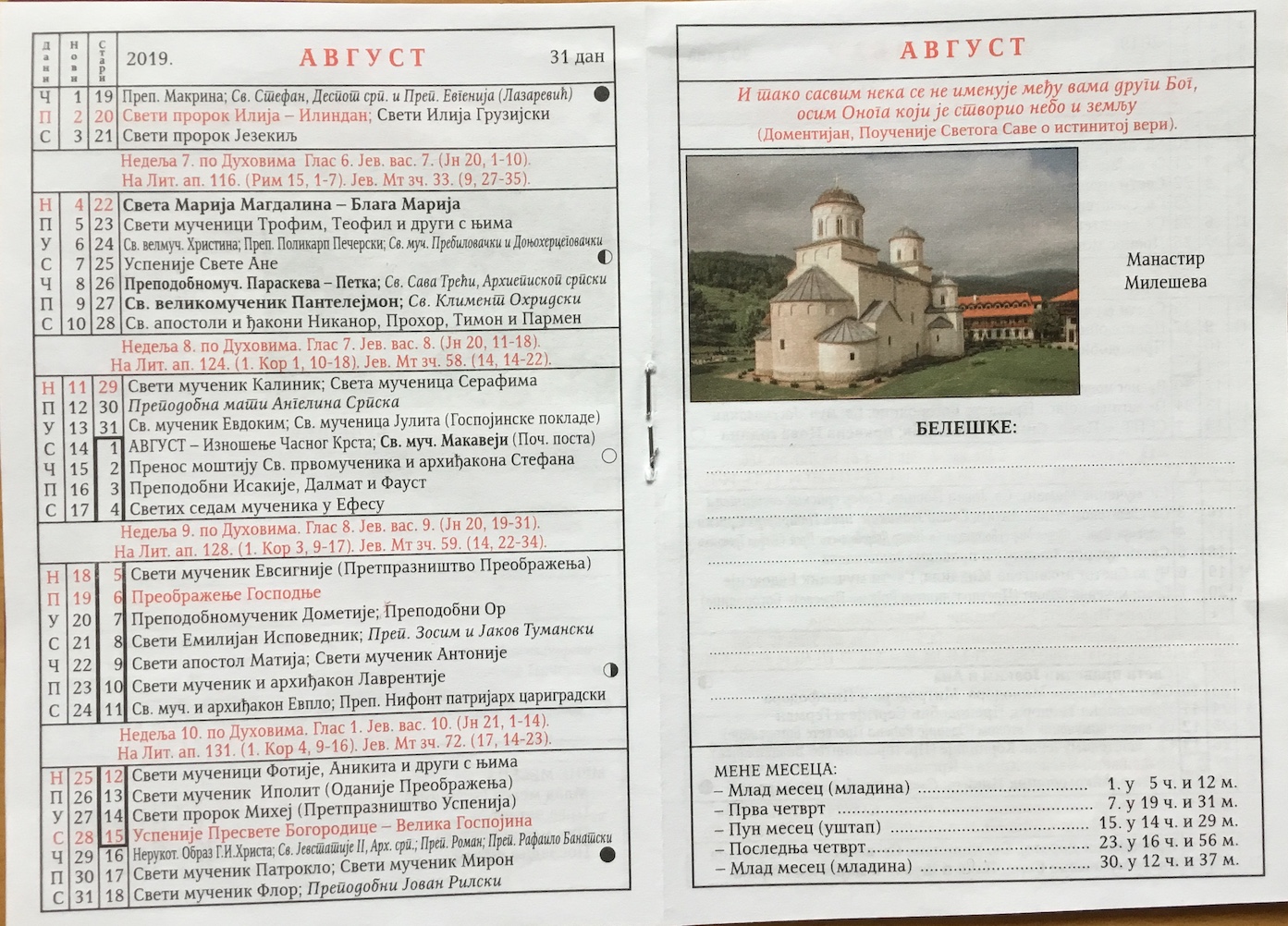 Погледајте и вечити Црквени календар на вебу: ОВДЕ