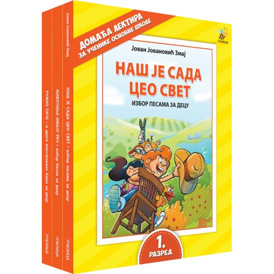Комплет садржи избор из басни ЖИВОТИЊЕ ИМАЈУ РЕЧ, НАШ ЈЕ САД ЦЕО СВЕТ – Јована Јовановића Змаја, сликовницу РУЖНО ПАЧЕ И ДРУГЕ ИЛУСТРОВАНЕ БАЈКЕ ЗА ДЕЦУ, али и додатак у виду радних листова са теоријским додацима и питањима за методичку обраду домаће лектире, речнике непознатих речи и биографије писаца.