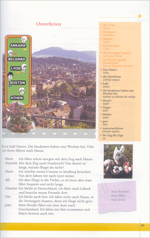 Udžbenik sadrži prvi, uvodni deo koji se obrađuje uz pomoć ilustracija i kasetofona.