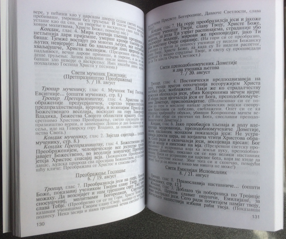 Исто тако и за многе друге светитеље, поготово за новојављене Србске, за које још није написан тропар и кондак, може се отпевати општи, само треба видети да ли je у питању мученик, свештеномученик, преподобни отац или неки други светитељ.
