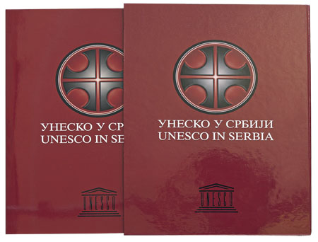 На 466 страна великог формата, на српском и енглеском језику, представљена су културна добра која уписана на листу Унеска: Гамзиград, Стари Рас и Сопоћани, Студеница, Високи Дечани, Грачаница, Пећка Патријаршија и црква Богородица Љевишка, затим Мирослављево јеванђеље и архив Николе Тесле. Представљено је културно-историјско наслеђе које припада Унесковој листи «Памћење света» као и парк природе Голија, проглашен резерватом природе Унеска. Српске средњовековне манастире на Косову и Метохији Унеско је сврстао у групу културних добара изложених опасности. У монографији су представљена културна и природна добра, специјални резервати и споменици природе: Шар планина, Ђердап, Тара, Делиблатска пешчара, Ђавоља варош, Обедска бара, горње Подунавље, Кучајске планине, Стара планина и Проклетије.