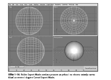 Komanda Expert Mode (Ctrl+X) uveæava prozor za prikaz, uklanjajuæi iz radnog okruženja menije, glavnu paletu alatki, komandni pano, dugmad Viewport Navigation, statusnu liniju i komandnu liniju.