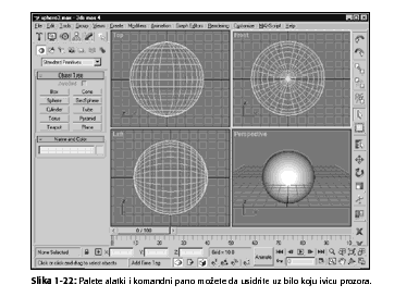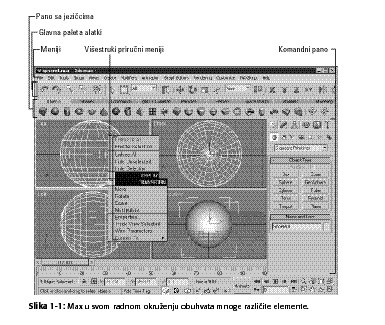 Kada proèitate ovo poglavlje, biæe vam poznato Maxovo radno okruženje, kao i sve nove osobine koje su dodate u ovoj verziji. Da biste uspešno koristili 3ds max, morate razumeti njegov interfejs. Maxovo radno okruženje sadrži niz razlièitih elemenata. Meniji, palete alatki i preèice sa tastature nude da na više naèina izaberete iste komande. Sami treba da otkrijete šta vam najviše leži.