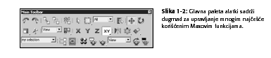 Glavna paleta alatki standardno se nalazi u vrhu Maxovog prozora. Max ima mnogo paleta alatki, ali je glavna paleta možda najkorisnija za rad sa glavnim Maxovim funkcijama. Slika 1-2 prikazuje glavnu paletu alatki u obliku plutajuæeg panoa.