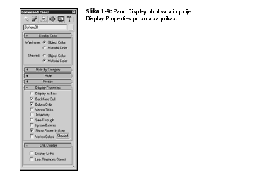 Pano za prikazivanje objekata (Display Panel), koji je prikazan na slici 1-9, omoguæava kontrolisanje izgleda objekata u prozorima za prikaz. Parametre prikazivanja možete da zadate za svaki objekat ponaosob. Pomoæu ovog panoa objekte možete da sakrijete ili zamrznete, i da promenite sve parametre za njihovo prikazivanje.