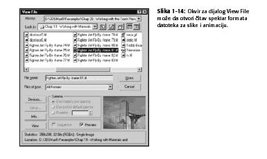 Komanda View Image File otvara okvir za dijalog View File, prikazan na slici 1-14. Taj okvir za dijalog omoguæava da vidite grafièke datoteke i datoteke sa animacijom pomoæu Virtual Frame Buffera ili sistemskog Media Playera.