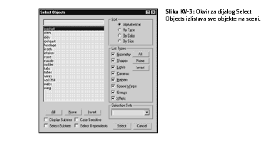 Name (ili pritiskanjem tastera H) otvorite okvir za dijalog Select Objects (slika KV-3).