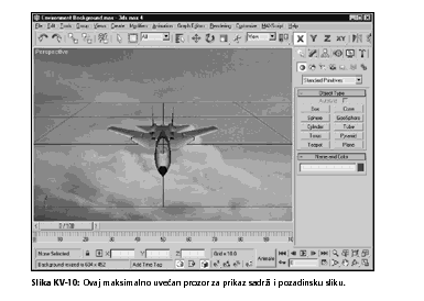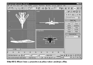 Model mlaznjaka pojaviæe se u središtu svih prozora za prikaz. Prozori za prikaz (engl. viewports) su delovi Maxovog radnog okruženja koji omoguæavaju pogled na scenu. Podrazumevani prozori za prikaz su gornji (Top), prednji (Front), levi (Left) i perspektivni (Perspective).