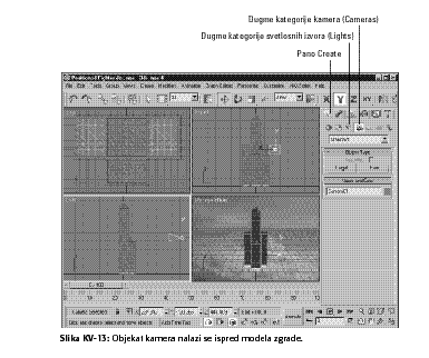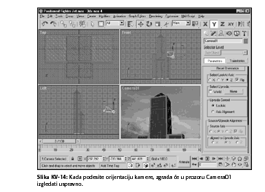 Pritisnite ponovo preklopnik Min/Max da biste na ekran vratili sva èetiri prozora za prikaz. U prozoru za prikaz sleva (Left) pritisnite dugme Select and Move, zatim pritisnite svaku prevojnu taèku i pomerajte ih dok sve ne budu vidljive u prozoru Camera. Pritisnite ponovo podobjekat Vertex da biste napustili režim ure?ivanja podobjekata.
