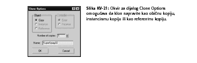 Pojaviæe se okvir za dijalog Clone Options (slika KV-21) koji koristite da biste napravili klon objekta Super Spray.