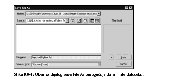 Save As, pri èemu æe se otvoriti okvir za dijalog Save File As (slika KV-1). U polju Save in izaberite direktorijum za smeštanje datoteke, u polje File Name upišite