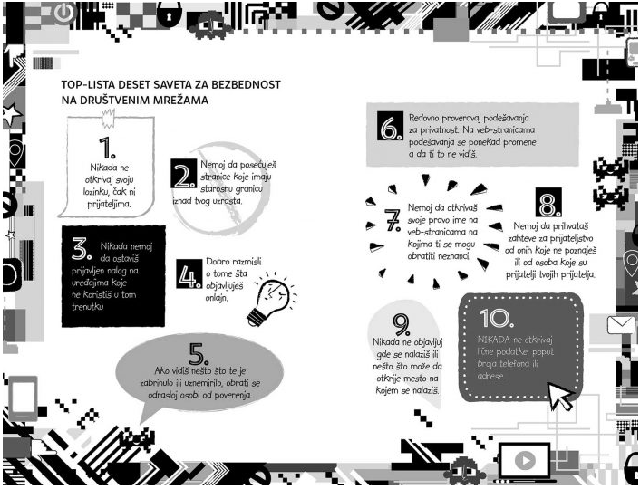 Ova knjiga sadrži brojne savete o tome kako da koristiš internet na bezbedan način i kako da se ophodiš prema onima koji se na njemu loše ponašaju. Naći ćeš i primere svega onoga dobrog što možeš da uradiš onlajn – nije sve tako crno.
