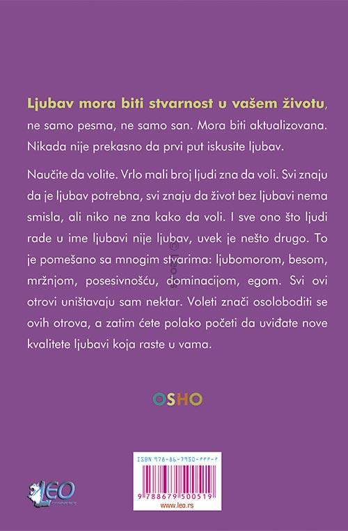Naučite da volite. Vrlo mali broj ljudi zna da voli. Svi znaju da je ljubav potrebna, svi znaju da život bez ljubavi nema smisla, ali niko ne zna kako da voli. I sve ono što ljudi rade u ime ljubavi nije ljubav, uvek je nešto drugo. To je pomešano sa mnogim stvarima: ljubomorom, besom, mržnjom, posesivnošću, dominacijom, egom. Svi ovi otrovi uništavaju sam nektar. Voleti znači osoloboditi se ovih otrova, a zatim ćete polako početi da uviđate nove kvalitete ljubavi koja raste u vama.
