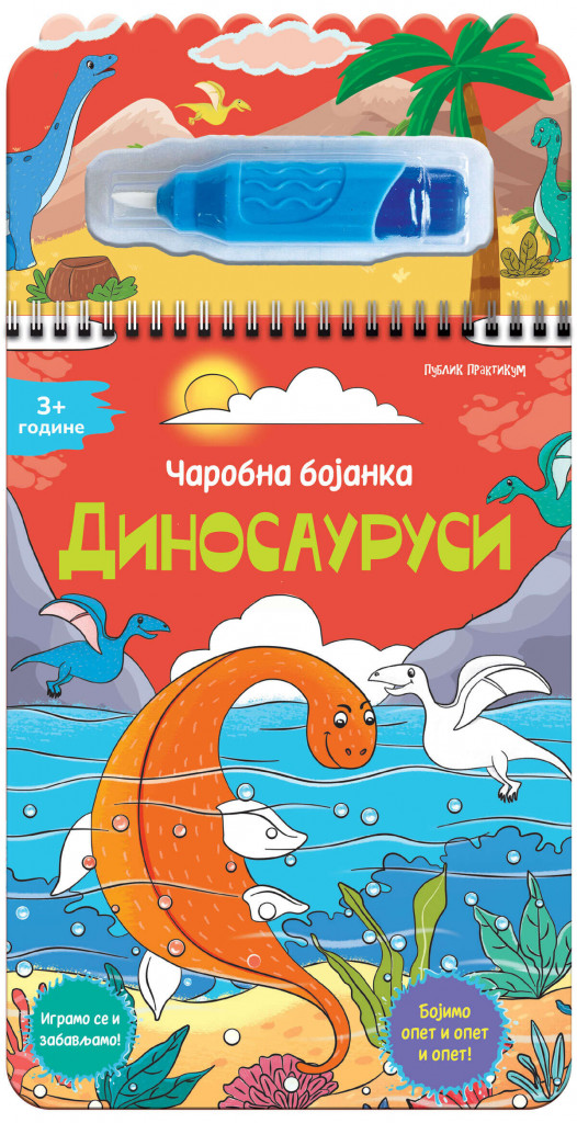 Otkrij svet dinosaurusa na čaroban način! Bojanku pred sobom možeš koristiti više puta. Dovoljan je dodir vode i boje na ilustracijama će oživeti. Pored toga, uživaćeš u zabavnim aktivnostima koje će potpuno zaokupiti tvoju pažnju. Napuni flomaster vodom, pusti mašti na volju i stvori najlepši svet dinosaurusa uz divne ilustracije. Bojimo opet i opet i opet!
