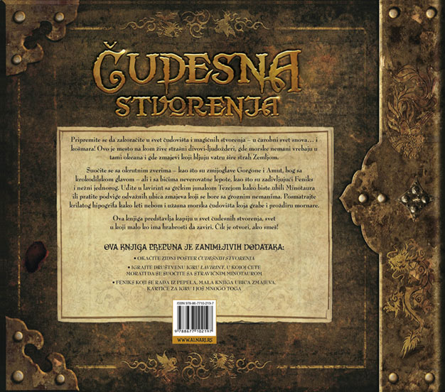 Suočite se sa okrutnim zverima – kao što su zmijoglave Gorgone i Amut, bog sa krokodilskom glavom – ali i sa bićima neverovatne lepote, kao što su zadivljujući Feniks i nežni jednorog. Uđite u lavirint sa grčkim junakom Tezejom kako biste ubili Minotaura ili pratite podvige odvažnih ubica zmajeva koji se bore sa groznim nemanima. Posmatrajte krilatog hipogrifa kako leti nebom i užasna morska čudovišta koja grabe i proždiru mornare.