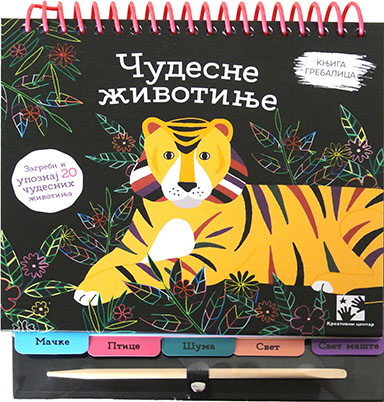 Загреби и откриј 20 чаробних слика животиња. На полеђини сваке слике налази се текст о једној животињи. Сваку страницу можеш да одвојиш и да слику ставиш где год желиш. Уз књигу добијаш и дрвену оловчицу за гребање.