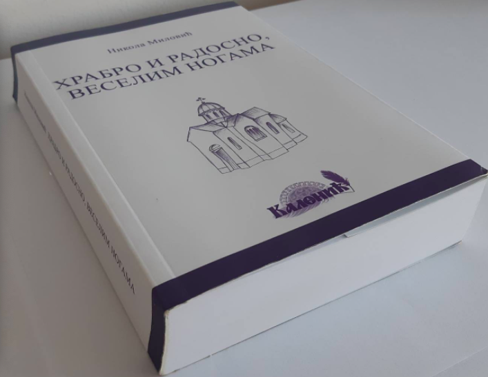 Књига „Храбро и радосно, веселим ногама“ представља аутобиографски осврт протојереја Николе Миловића на важан период свог живота, односно његово обраћење Цркви, женидбу и ступање у клир.