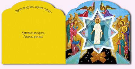 Из штампе је изашла друга књига из библиотеке ПОЗДРАВИ "Христос воскресе!". Штампана је у 30.000 примерака на неколико језика - српском, руском, румунском, грчком и енглеском. Као издавач за румунски језик појављују се наши стари пријатељи, ИК Predania из Румуније, за грчки језик манастир Васкрсења из Епархије бачке, за енглески језик Светигора, као и за српски језик за подручје Црне Горе, и књиге су изашле са благословом Митрополита црногорско-приморског Амфилохија. За руски језик издавач је, са благословом Патријарха московског и све Русије Алексеја другог, Издавачки савет Руске Православне Цркве, а такође је део тиража на руском језику издала Дуга Књига, која се појављује као издавач на српском језику, заједно са Друштвом пријатеља манастира Ђурђеви Ступови у Расу. Књига је на српском језику изашла са благословом Владике рашко-призренског и косовско-метохијског Артемија. И ова књига је, као и претходна, "Христос се роди!", својеврсна књига-играчка, и њоме издавачи покушавају да попуне празнину која влада када су у питању православне књиге за најмлађе. Колико су у томе успели, суд ће дати читаоци, којима са радошћу предајемо у руке ову књигу.