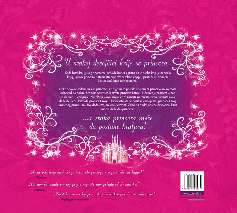 Latica vodi kroz svet princeza. Neke devojke rođene su kao princeze, a druge su to postale udajom za princa – svako mora odnekud da počne. Uz pomoć stručnih saveta princeze Latice i Udruženja princeza – čije su članice i Pepeljuga i Zlatokosa – ova knjiga će te naučiti svemu što treba da znaš: kako da budeš lepa, kako da pronađeš svoju Dobru vilu, da se nosiš sa čarolijama, pronađeš svog savršenog princa i mudro vladaš svojim kraljevstvom. Zašto da budeš obična devojčica, kada možeš da budeš princeza? U SVAKOJ DEVOJČICI KRIJE SE PRINCEZA, A SVAKA PRINCEZA MOŽE DA POSTANE KRALJICA...