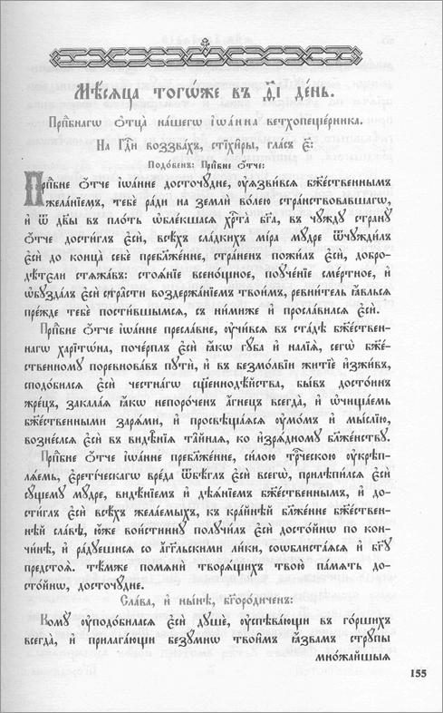 Минеј месечни, празнични и општи. Минеј месечни (од μηναιον - месец) садржи променљиве молитве за сваки дан у години, по датумима сваког месеца, за непокретне празнике (то јест такве који долазе увек одређеног дана у одређеном месецу). Стога се Месечни минеј, у складу са бројем месеци у години, састоји од дванаест књига.