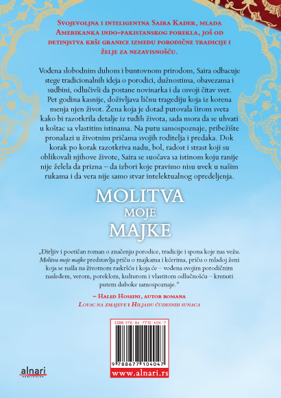 „Dirljiv i poetičan roman o značenju porodice, tradicije i spona koje nas vežu. Molitva moje majke predstavlja priču o majkama i kćerima, priču o mladoj ženi koja se našla na životnom raskršću i koja će – vođena svojim porodičnim nasleđem, verom, poreklom, kulturom i vlastitom odlučnošću – krenuti putem duboke samospoznaje.“