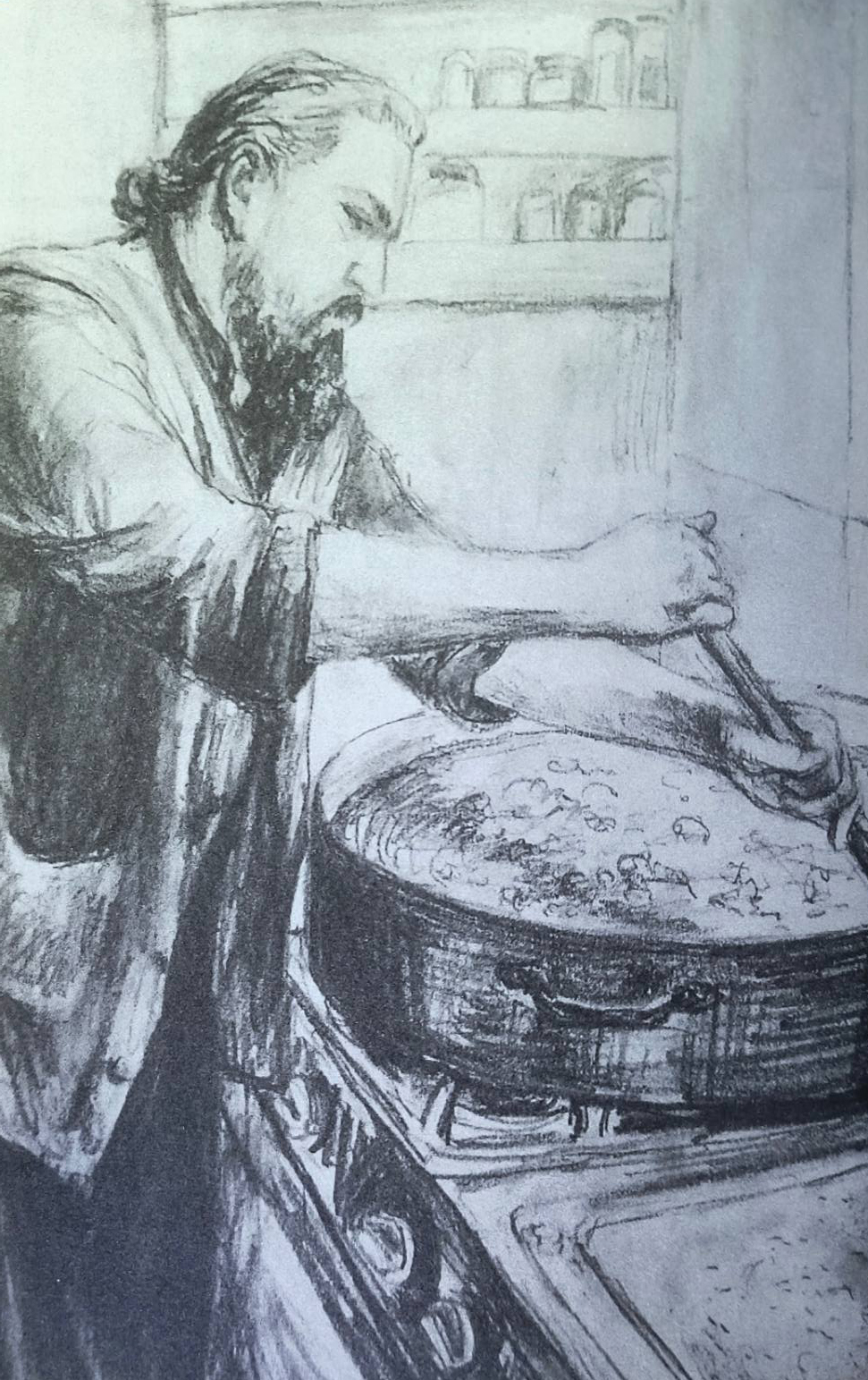 „Господ је човеку подарио све плодове природе да њима одржава земаљско тело и са захвалношћу (и мером) у њима да ужива. Као што у свим трпезаријама великих манастира, у којима се молитвено обедује, са зидова, пред очима монаха врхуне ликови, највиши узори, интелектуалци и подвижници Цркве, тако је и аутор дела овог, архимандрит Онуфрије, уз сваки рецепт поставио по једну поуку да би сугубо (вишеструко) свезао земаљску и небеску храну и подсетио да материју одржава Слово, а Творац творевину.“