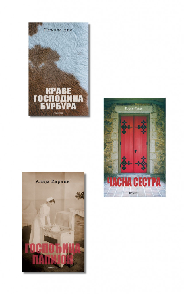 Три наслова белгијске књижевности – 60% Искористите попуст и поручите 3 наслова по сниженој цени: Краве госодина Бурбура Часна сестра Госпођица Папијон Краве господина Бурбура Издигнута до апсурда, ситуација господина Бурбура и његове две краве остале на погрешној страни ограде, јесте фокус овог романа. Да све ситуације у кафкијанском маниру осликане нису болна истина садашњице, овај роман би био веома духовит. Одлука саможивог председника, да целу земљу огради, а године пунолетства помери са осамнаест на двадесет и једну, повући ће са собом низ последица. Две краве су једине којих се ова одлука не тиче – мирно пасу с погрешне стране, у новој земљи. Како прећи ограду, а да се жица не задене дубоко у месо? Славанија је свачија земља, а Лукас Прашчек, чини се, свачији председник. Часна сестра Откривајући породичне тајне јунакиња, Паскал Тусен скида маску са једног дела белгијског друштва, откривајући лицемерство примењиво на читав свет у свеукупности његовог постојања. Феминисткиња Сесил, лезбијка Тереза, монахиња Ањес и Клер која живи у ванбрачној заједници, пркосиће свим типизираним друштвеним нормама, и својом косом боје буктиње осветлиће хипокризију времена у ком живе. У двадесет кратких поглавља испрекиданим белинама, упознаћемо четири жене које, не без последица, преживљавају сопствену породицу, нарочито оца – тај црвени лампион инцеста . Госпођица Папијон Роман носи име по изузетној жени, Терези Папијон, болничарки која је била проглашена за Праведну међу народима, будући да је цео живот посветила спасавању деце из сиромашних средина, нудећи им смештај и опоравак у санаторијуму, који је основала у опатији Валоар. У жељи да ода почаст овој изузетно пожртвованој жени, која се посветила племенитој мисији спасавања деце из целе Француске, од туберкулозе, након завршетка Првог светског рата, у периоду између два рата, током Другог светског рата и све до болничаркине смрти 1983. године, Алија Кардин написала је роман.
