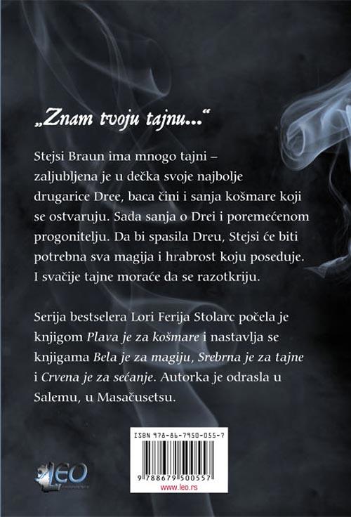 Bestselerska serija Lori Ferie Stolarc je počela sa knjigom Plava je za košmare, i nastavlja se knjigama Bela je za magiju, Srebrna je za tajne, i Crvena je za sećanje. Autorka je odrasla u Salemu, Masačusets.