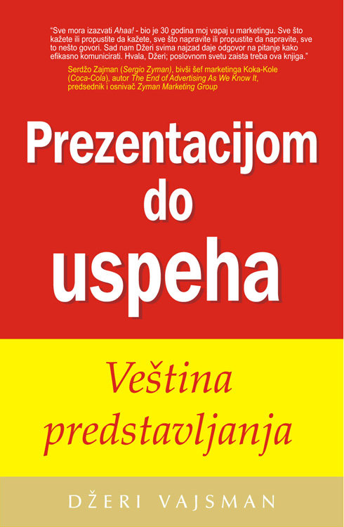 Svetski poznati savetnik i prezentator Džeri Vajsman u ovoj knjizi, kao i na seminaru UMEĆE PREDSTAVLJANJA koji se održao u maju 2007. u Beogradu, govori kako da se povežemo sa najtežom i najzahtevnijom publikom i da ih podstaknemo na akciju.