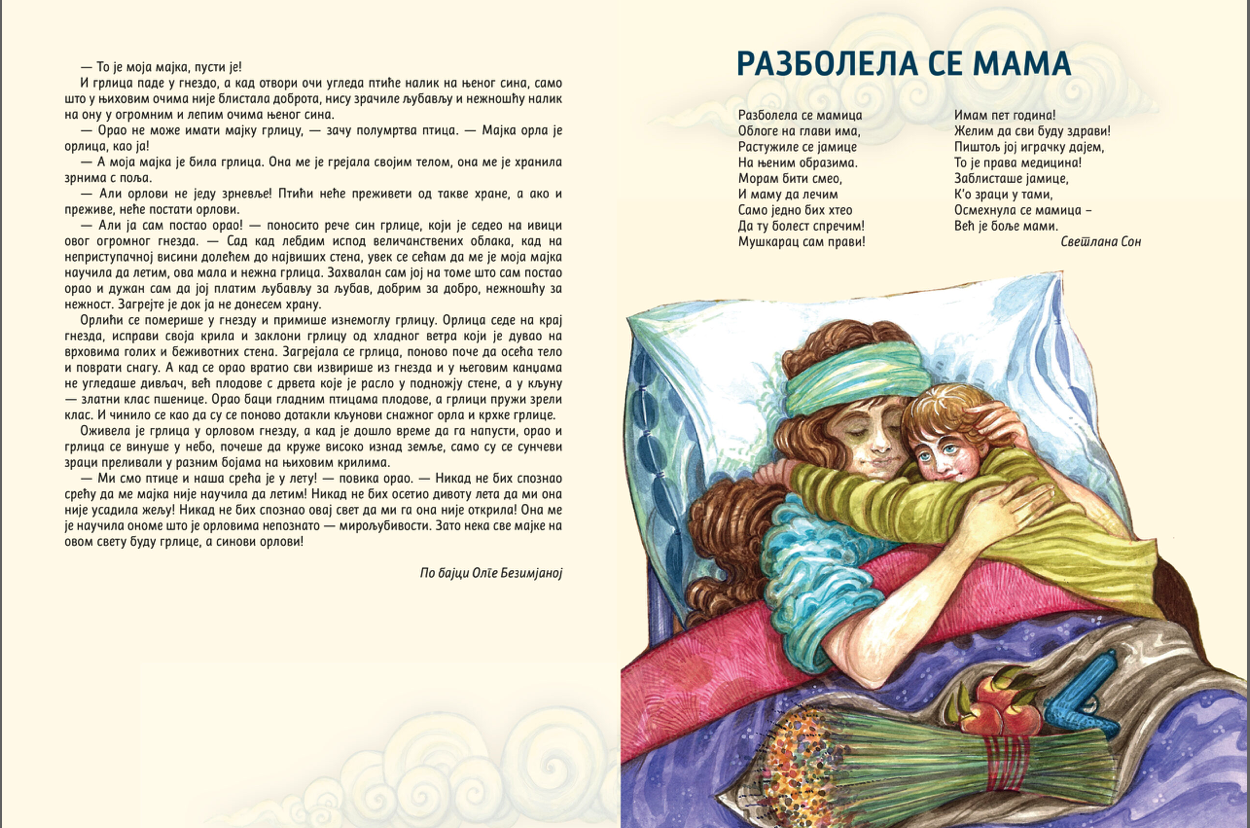 Топле приче и песме што су слетеле на листове ове књиге говоре о мајци и њеној непрестаној жртвеној љубави за своју децу. Говоре, наравно, и о љубави деце према мајци, али и о повременој незахвалности за оно што она чини за њих: за непроспаване ноћи, бригу, наду и стрепњу, за несебичну љубав којој нема краја.