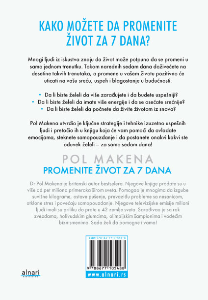 Pol Makena utvrdio je ključne strategije i tehnike izuzetno uspešnih ljudi i pretočio ih u knjigu koja će vam pomoći da ovladate emocijama, steknete samopouzdanje i da postanete onakvi kakvi ste oduvek želeli – za samo sedam dana!