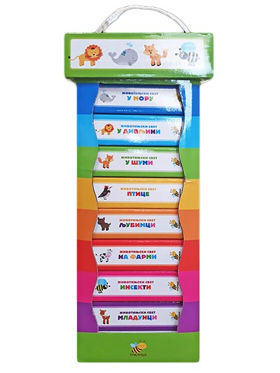Уз осам књижица ЖИВОТИЊСКИ СВЕТ малишани ће се упознати са називима најразноврснијх животињских врста у шуми, мору, на фарми, са младунцима, инсектима и птицама.
