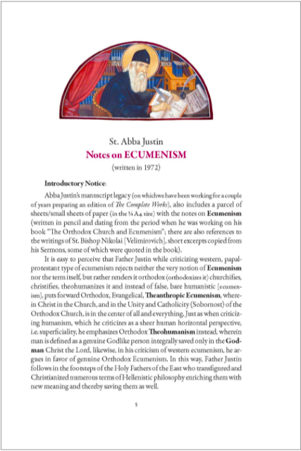 St. Abba Justin: Notes on ecumenism