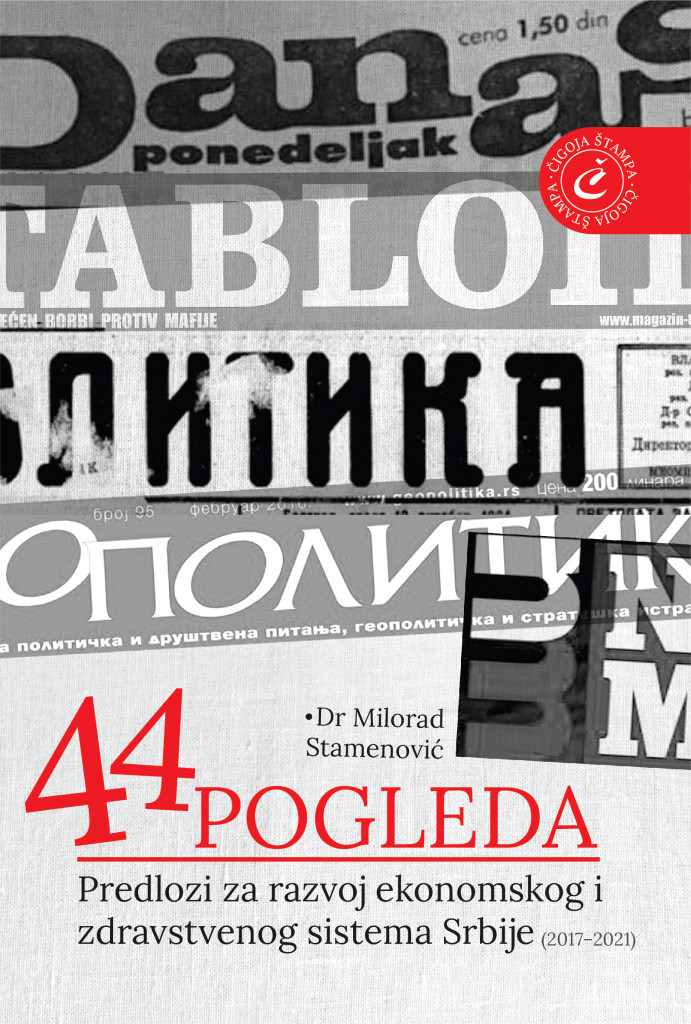 44 pogleda : predlozi za razvoj ekonomskog i zdravstvenog sistema Srbije (2017–2020) : izabrani autorski tekstovi i intervjui Čigoja štampa | 2022 god. 1.349,00 RSD (13,00 EUR) |