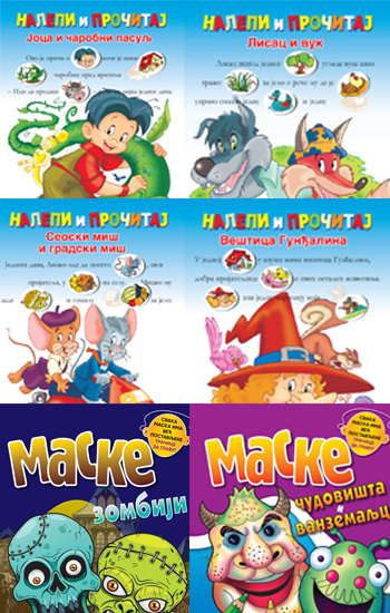 Atlasi (61) Avanture (107) Bajke, priče, basne (366) Bebe (24) Bojanka (66) Domaći autori (32) Edukativne (345) Enciklopedije (42) Epska fantastika (31) Fantastika (23) Istorija (44) Knjige na engleskom jeziku (22) Kratke priče (5) Leksikoni (4) Lektira (158) Mala psihologija (5) Mitovi i legende (1) Narodne priče i umotvorine (4) Nauka (13) Pesmarice (41) Poezija za decu (36) Ponašanje (16) Predškolski uzrast (284) Priručnik (42) Prve knjige (13) Pustolovine (3) Radosnice (18) Razonoda (198) Rečnici (5) Romani (195) Slagalice (49) Slikovnice (373) Strip (48) Svemir (4) Tinejdžeri (136) Uzrast 0-2 (76) Uzrast 12-16 (91) Uzrast 3-5 (329) Uzrast 5-9 (352) Uzrast 9-12 (227) Za osnovce (349) Životinje (76) Zvučna knjiga (12) |