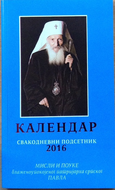 Календар - свакодневни подсетник 2016: Мисли и поуке блаженоупокојеног патријарха српског Павла 160 str. (2015 god.) Cena: 350,00 DIN |