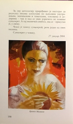 За ову антологију приређивач је настојао да редослед песама успостави по њиховим унутрашњим, значењским и тематским, токовима и додирима, чак и кад се увек изричито не помиње сунцокрет. А тај песнички симбол, зна се, присутан је у свему.