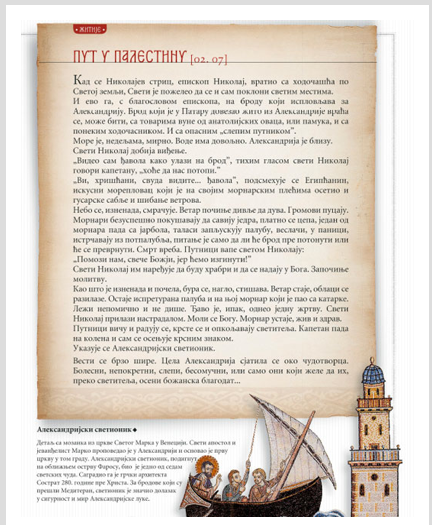 Књиге из библиотеке СЛАВА православну духовну традицију представљају најсавременијим нацином текстуалног и визуелног обликовања. Књиге су богато опремљене уз обиље популарно представљеног историјског и теолошког материјала, са великим бројем илустрација. На узбудљив, филмски нацин упознају нас са животом светитеља који се славе у православној цркви а у Србији су најцешци заштитници српских домова и породица, а дају нам и исцрпан и занимљив историјат њиховог култа како на Истоку тако и на Западу. Књиге су идеалан поклон за све оне који славе славу и имају и посебан део у коме су објашњени најважнији детаљи везани за само слављење славе. У књизи се може наци велики број кроз историју забележених цуда Светог Николаја Цудотворца, објашњење смисла Божијих цуда и цуда Wегових светитеља, али и детаљно илустровано и протумацено житије Николаја епископа мирликијског роденог у Патари у Малој Азији. У делу књиге који прати развој култа једног од најпопуларнијих хришцанских светитеља, измецу осталог може се процитати о томе како су на Западу од епископа светитеља који се осим милосрдем истицао својом храброшцу и супротстављањем јеретицима направили митску фигуру Деда Мраза.