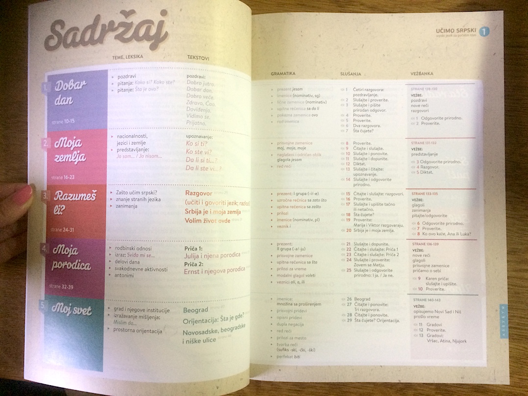 Učimo srpski 1 is based on experience derived from innumerable successful classes with beginners that were held at Azbukum over the years. There are illustrative, modern and very functional reading, writing, listening and speaking materials. Tips on everyday expressions, short grammar reviews, come with every lesson.