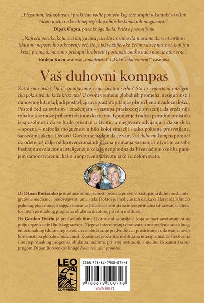 Zašto smo ovde? Da li ispunjavamo svoju životnu svrhu? Šta to evoluciona inteligencija pokušava da kaže kroz nas? U ovom vremenu globalnih promena, nesigurnosti i duhovnog lutanja, ljudi postavljaju ova prastara pitanja s obnovljenom radoznalošću. Postoji žeđ za svrhom i značenjem – nastupa praskozorje shvatanja da sreća nije roba koja se može pribaviti zlatnom karticom. Ispunjenje i radost prirodno proističu iz sposobnosti da se bude prisutan u životu, u njegovom odvijanju, i da se sluša – spozna – najbolja mogućnost u bilo kojoj situaciji i tako pokrene prosvetljena, saosećajna akcija. Džoan i Gordon se nadaju da će vam Vaš duhovni kompas pomoći da odete još dalje od konvencionalnih načina primanja saznanja i otvorite za sebe beskrajnu evolucionu inteligenciju koja je neophodna da bi se načinio skok ka punijem samoostvarenju, kako u sopstvenom životu, tako i u celom svetu.