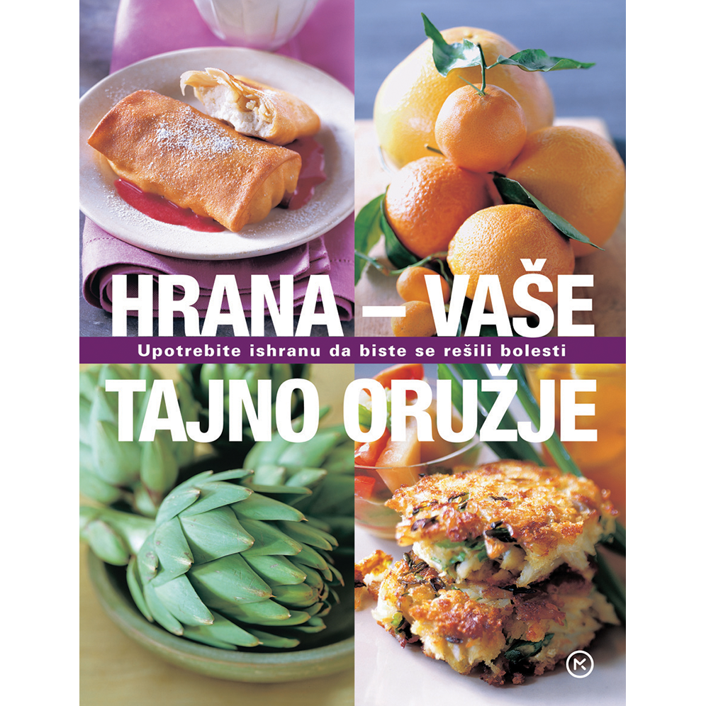 HRANOM PROTIV BOLESTI! HRANA – VAŠE TAJNO ORUŽJE pokazuje kako upotrebiti namirnice iz svakodnevnog života – ne samo voće, povrće i ribu već i meso, pa čak i divne deserte – za lečenje i, u nekim slučajevima, za prevenciju mnogih uobičajenih oboljenja. U ovoj knjizi, jednostavnoj za upotrebu, pronaći ćete: • 50 namirnica superzvezda – nabrojanih u podesnom A–Ž obliku – zajedno sa savetima o tome kako da pojačate njihove korisne efekte do maksimuma i na mnogo ukusnih načina uključite svaku od njih u svoju svakodnevnu ishranu; • 50 uobičajenih oboljenja – sve od artritisa i povišenog holesterola do raka prostate, nabrojanih takođe abecednim redom – zajedno s arsenalom namirnica neophodnih za lečenje svakog od ovih oboljenja, kao i s ukusnim receptima u koje su te lekovite namirnice uključene; • 100 ukusnih recepata – od predjela i glavnih jela do deserta – koji čine unošenje hrane radi dobrog zdravlja prijatnim. Isprobajte ih i osećajte se sjajno!