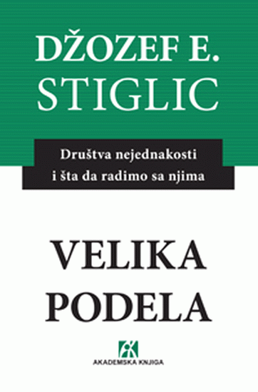 „Velika podela”, prema tumačenju paradigmatičnog nobelovca i bivšeg predsednika Svetske banke, Džozefa Stiglica, samo je metafora za sve veće ekonomske razlike među ljudima: kako prema imovini, tako i prema dohotku. One su, u knjizi koja je pred vama, veoma uverljivo prikazane pre svega na primeru SAD, ali su navedene i kao loša globalna tendencija koja traje tokom poslednje četiri decenije. Eskalacija nejednakosti do ekstrema, delimično je uzrok sporog ekonomskog rasta, ali su spori rast i nejednakost „pitanja političkog izbora”. Oni reprodukuju stanje začaranog kruga u kome su institucije, zakoni, sistem oporezivanja, pa i izbori, podređeni interesima gornjih 1% stanovništva. Taj 1% koji u SAD raspolaže sa blizu 22% bogatstva (a najbogatijih 0,1% sa oko 11%) uspeva da zahvaljujući koncentraciji moći dalje povećava nejednakost i nepremostivi jaz, pa čak i fizičko razdvajanje bogatih četvrti u odnosu na siromašne delove gradova, a sa obrazloženjem zaštite održavanja javnih dobara, ili pak omogućavanja povoljnog socijalnog i kulturnog okruženja za razvoj njihove dece.
