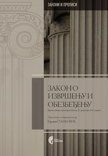 Народна скупштина усвојила је Закон о извршењу и обезбеђењу 21. децембра 2015. године. Овим законом уређује се поступак извршења и обезбеђења, али он садржи и норме организационог и статусног карактера о јавним извршитељима, као и материјалне норме којима се регулишу материјалноправне последице појединих извршних радњи због чега се сматра да представља врсту „омнибус прописа“. Закон садржи низ новина посебно из области извршног права које имају за циљ да се систем принудне наплате потраживања учини ефикаснијим и правичнијим, као и новине којима се мења процесни положај извршних дужника.Овај закон ступа на снагу од 1. јула 2016. године, изузев одредаба које су ступиле на снагу крајем децембра прошле године сходно члану 551. новог закона.Ступањем на снагу престаје да важи Закон о извршењу и обезбеђењу из 2011. године.Ово издање садржи уводни текст у коме су објашњена основна решења новог прописа и детаљан стварни регистар који читаоцима олакшава проналажење одређених института у Закону.Аутор предговора и стварног регистра је др Гордана Станковић, редовни професор Правног факултета Универзитета у Нишу.