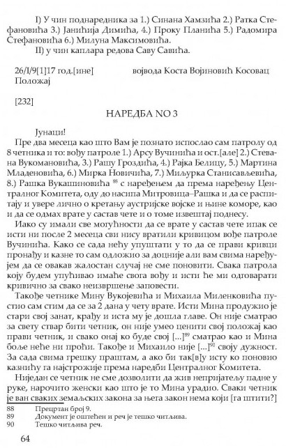 Коста Војиновић Косовац је бележио о најважнијим догађајима од пролећа 1916. године, до погибије 11./24. децембра 1917. године. Обиман и драгоцен запис настао из пера четничког војводе Косовца, објављујемо у овој књизи. Он је свој дневник писао у пет различитих бележница, како по величини тако и по броју страница. Бележнице су исписане црном, зеленом, љубичастом оловком, а црвена бојица је коришћена за коректуру и неке само аутору знанае "шифре". Белешке су написане ћирилицом, правилним, јасним и лепо писаним словим, а наслови и важне речи већим и украшеним словима.