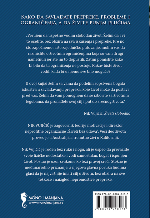 Ova knjiga sadrži Nikovu priču o fizičkoj uskraćenosti i emocionalnoj borbi, koju je kao dete i adoloscent vodio nastojeći da prevaziđe svoju invalidnost: „Dugo sam se, tako usamljen, pitao da li na svetu postoji još neko sličan meni i da li moj život ima neku drugu svrhu osim podnošenja bola i poniženja“. On opisuje veru u Boga kao svoj glavni oslonac i izvor snage i objašnjava kako je odredio konačni životni cilj – da inspiriše druge za bolji život i time doprinese poboljšanju sveta – što je bio način da i sam stekne samopouzdanje i vodi ispunjen i slobodan život i pritom bude nagrađen za svoj trud.